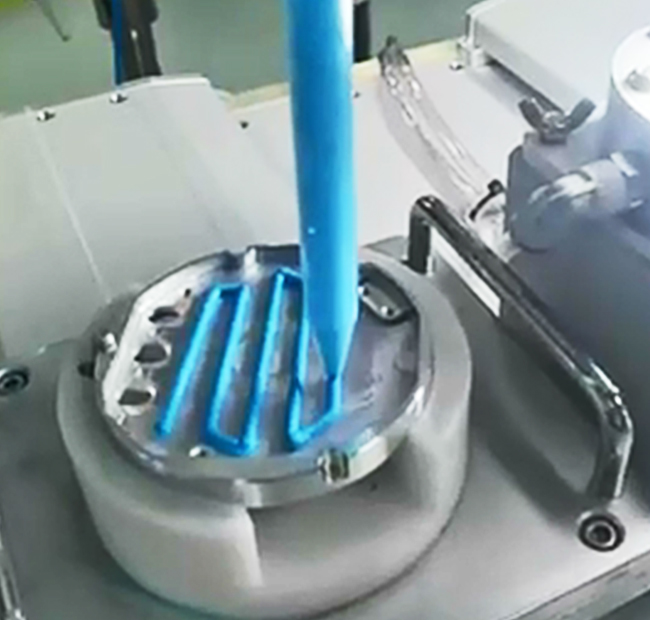 進(jìn)行精密涂膠操作,如涂膠存在角度問(wèn)題,可考慮用四軸方案解決。